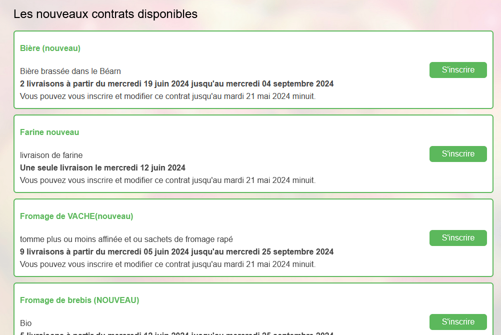 – spécificité pour les légumes : c’est un contrat à abonnement donc avec 3 jokers à positionner mais c’est un contrat spécial car si une semaine vous n’êtes pas là, votre crédit restera intact.
